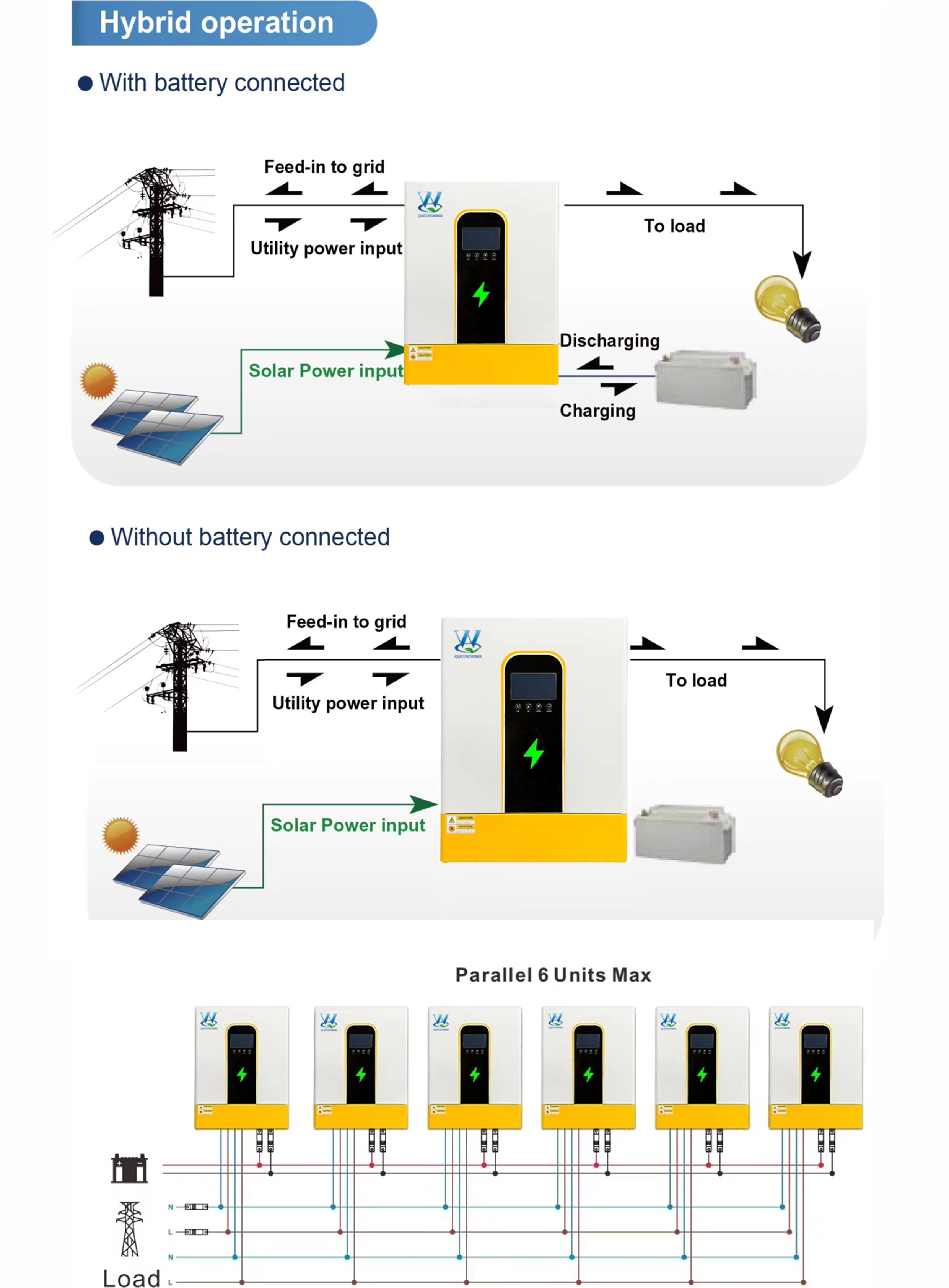 • Parallel max up to 6 units • Lithium battery activation function by PV or Utility